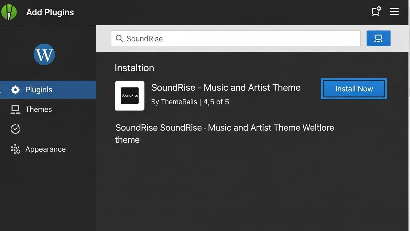 Upload SoundRise Theme – Go to Appearance → Themes → Add New → Upload Theme.